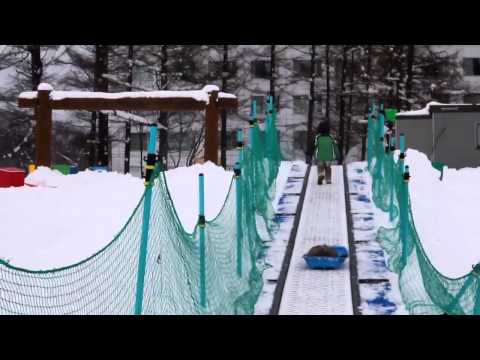 Then, finally, he is willing to sit in the toboggan, and surprisingly, he found it fun, and keep on sliding down and walk up, and sit in his toboggan and not willing to leave. He was there the whole afternoon, and he was having lots of fun with it.